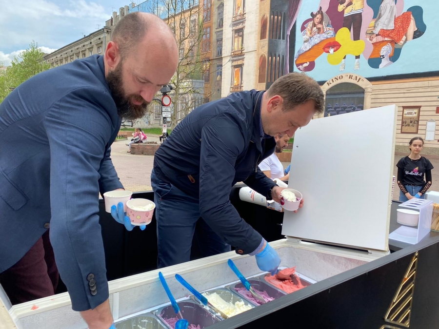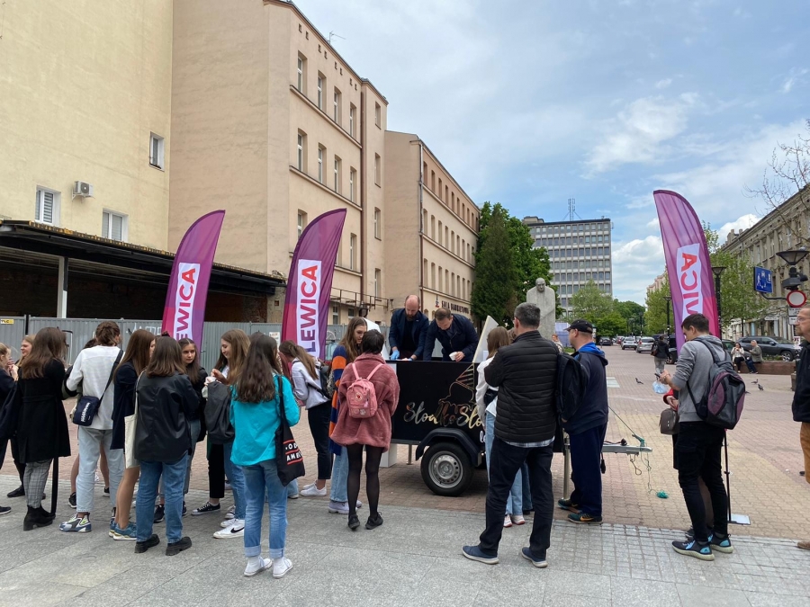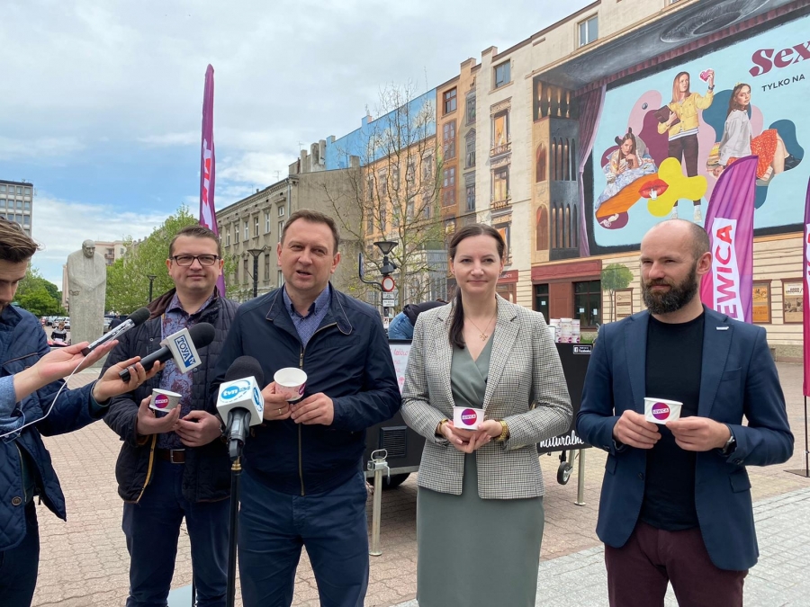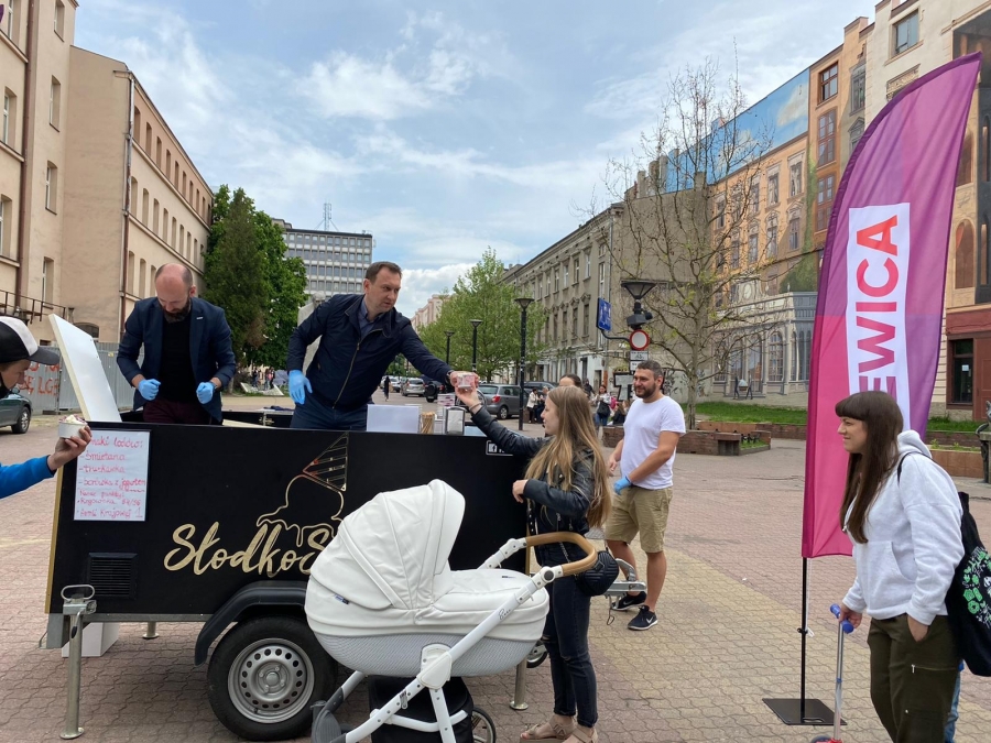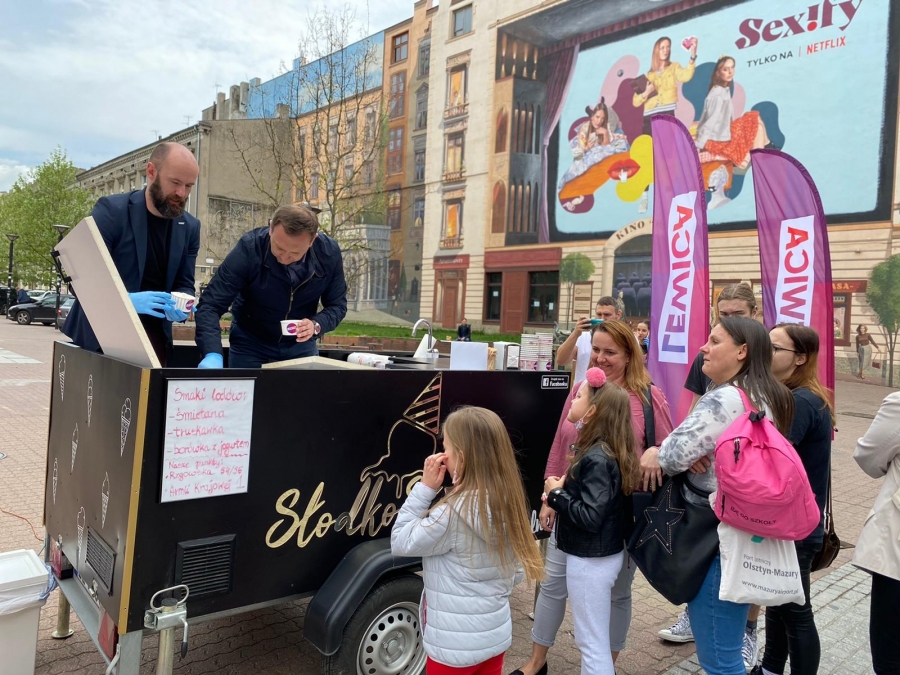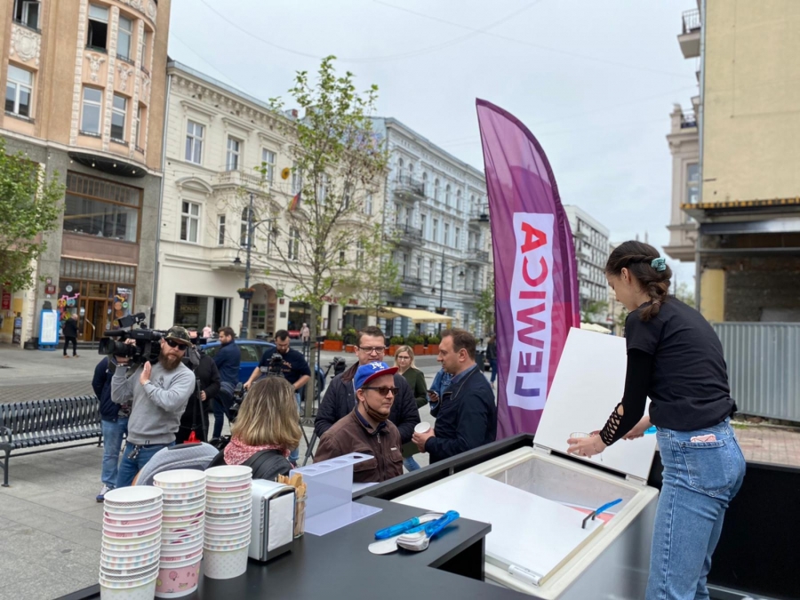 "Dzień Dziecka to piękny dzień dla tych najmłodszych, ale i dla tych starszych. Dzisiaj będziemy rozdawać lody za ładny, szczery uśmiech. W kolorowych kubeczkach będzie można otrzymać trzy smaki: śmietankowy, truskawkowy i - kolor oraz smak, no może smak nie, ale kolor Lewicy - jagodowy. Chcemy w ten sposób porozmawiać z mieszkańcami Łodzi i życzyć im fajnego, udanego dnia" - mówił poseł Tomasz Trela.