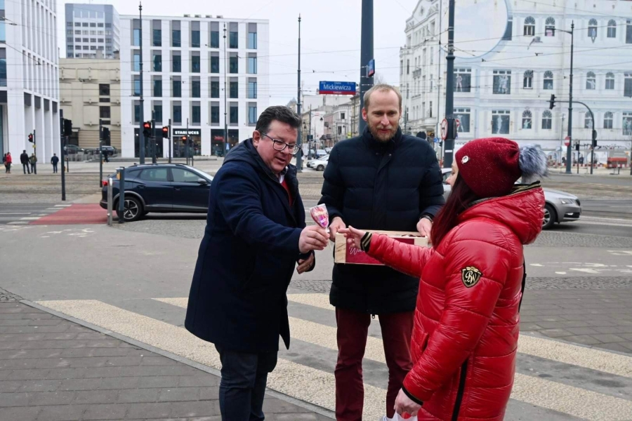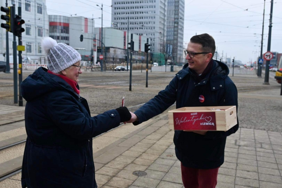 "Dzisiaj fajne, radosne święto - Walentynki. Ludzie się kochają, mamy nadzieję, że kochają się każdego dnia, ale dzisiaj w sposób szczególny jest emanacja tej miłości i dzisiaj Lewica, Nowa Lewica, Partia Razem też umilają łodzianom życie. Rozdajemy lizaki, rozdajemy krówki, ale przy okazji Walentynek chcemy też powiedzieć o jednym, bardzo ważnym problemie, z którym borykają się głównie młodzi obywatele naszego kraju. To jest brak dostępności własnego mieszkania. To jest ta zmora, która trapi Polskę od kilkudziesięciu lat, z którą żaden rząd nie był w stanie sobie poradzić. Młodzi ludzie często mieszkają z rodzicami, brakuje w Polsce dwóch milionów mieszkań. Wynajem mieszkania to dobro luksusowe, a wzięcie kredytu, w tych czasach, to zarobki na poziomie 10-15 tys. zł, żeby w ogóle myśleć o jakimkolwiek kredycie na jakiekolwiek mieszkanie. My jako Lewica zawsze uważaliśmy, że mieszkanie jest prawem, a nie towarem i mówimy to bardzo wyraźnie i bardzo jednoznacznie" - podkreślał poseł Tomasz Trela.