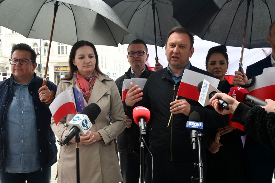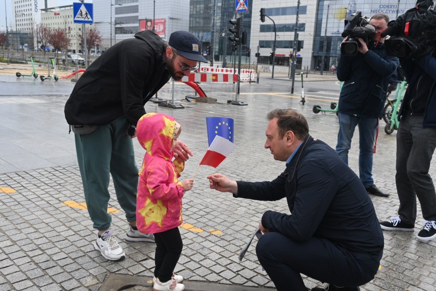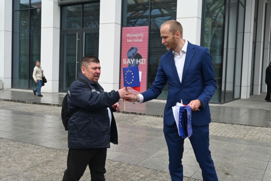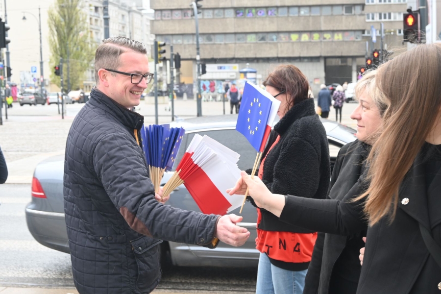 "Wczoraj świętowaliśmy święto ludzi pracy, 19. rocznicę wejścia Polski do Unii Europejskiej, a dzisiaj świętujemy Dzień Flagi i dzisiaj Lewica rozdaje mieszkańcom Łodzi, ale też tym, którzy odwiedzają Łódź, flagi, przede wszystkim biało-czerwone, bo to nasz symbol i nasza wartość, ale z racji tego, że jesteśmy w wielkiej wspólnocie europejskiej, dzisiaj postanowiliśmy rozdawać też flagi unijne, bo wszyscy jesteśmy Europejczykami, wszyscy jesteśmy Polakami. Jesteśmy dumni z tego, że jesteśmy Polakami, ale też jesteśmy bardzo dumni, że 19 lat temu Lewica wprowadziła Polskę do Unii Europejskiej" — mówił poseł Tomasz Trela, wiceprzewodniczący Klubu Lewicy.