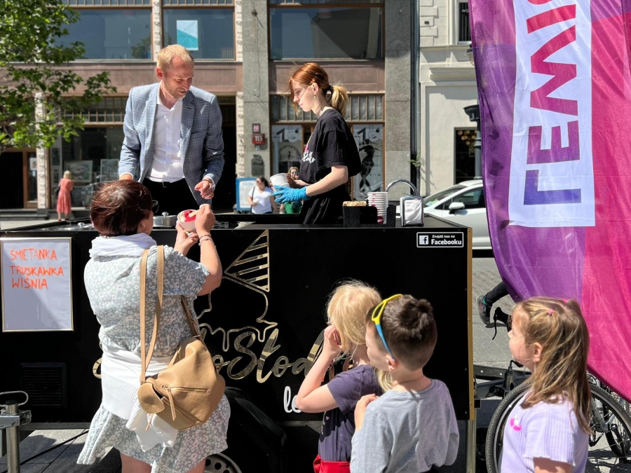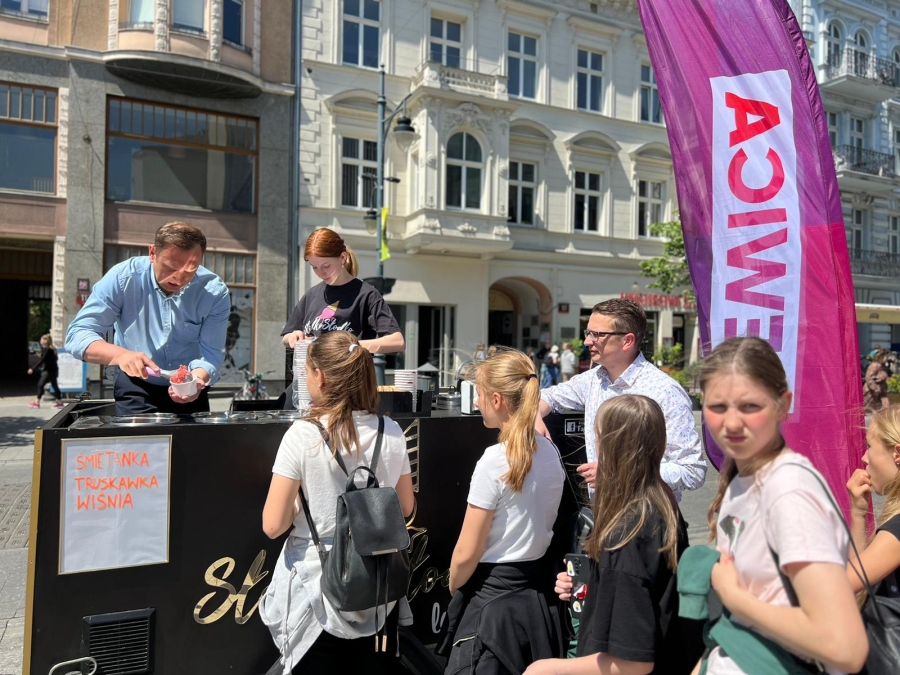 "Chciałam zaprosić na miejski dzień dziecka, który rusza 4 czerwca od godziny 12:00 na ulicy Piotrkowskiej. Także dzisiaj Lewica rozdaje lody, natomiast ten dzień dziecka jeszcze będzie w weekend, więc zapraszamy mieszkańców na uroczyste obchody dnia dziecka" — mówiła Małgorzata Moskwa-Wodnicka, Wiceprezydent Miasta Łodzi.