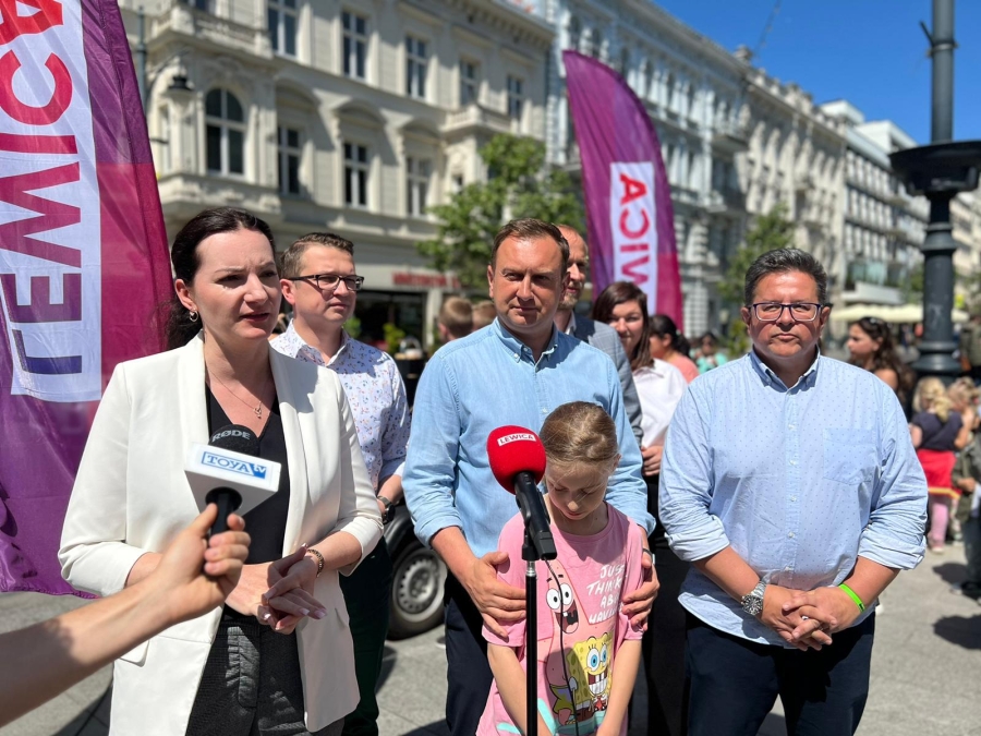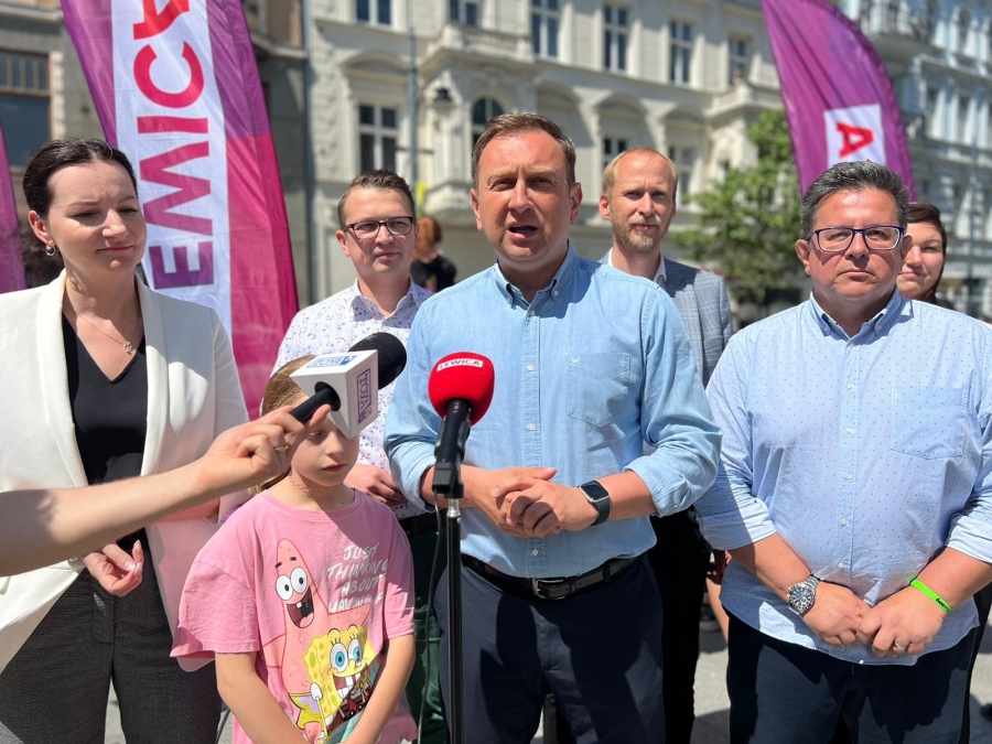 "Dziś Dzień Dziecka, więc my tradycyjnie, jak każdego roku, rozdajemy dzieciakom lody. Lody w różnych kolorach, białe, czerwone i nasze, takie lewicowe. Natomiast to jest też ważny dzień, żeby powiedzieć, jaki program, jakie postulaty ma Lewica dla najmłodszych i rodziców, którzy decydują się na dzieci. To po pierwsze żłobek w każdej gminie, to ogólnodostępne przedszkola, dobrze wyposażone, nowoczesne przedszkola i edukacja, edukacja szkolna i poza szkolna, która jest na dobrym poziomie, dobrze dofinansowana, z dobrze opłacanym nauczycielem i szkoła, która jest wolna, otwarta i demokratyczna, bez żadnych uprzedzeń, czyli zupełnie inaczej, niż jest teraz, zupełnie przeciwnie do tego, co proponuje minister Czarnek" — wymieniał poseł Tomasz Trela, wiceprzewodniczący Klubu Parlamentarnego Lewicy.