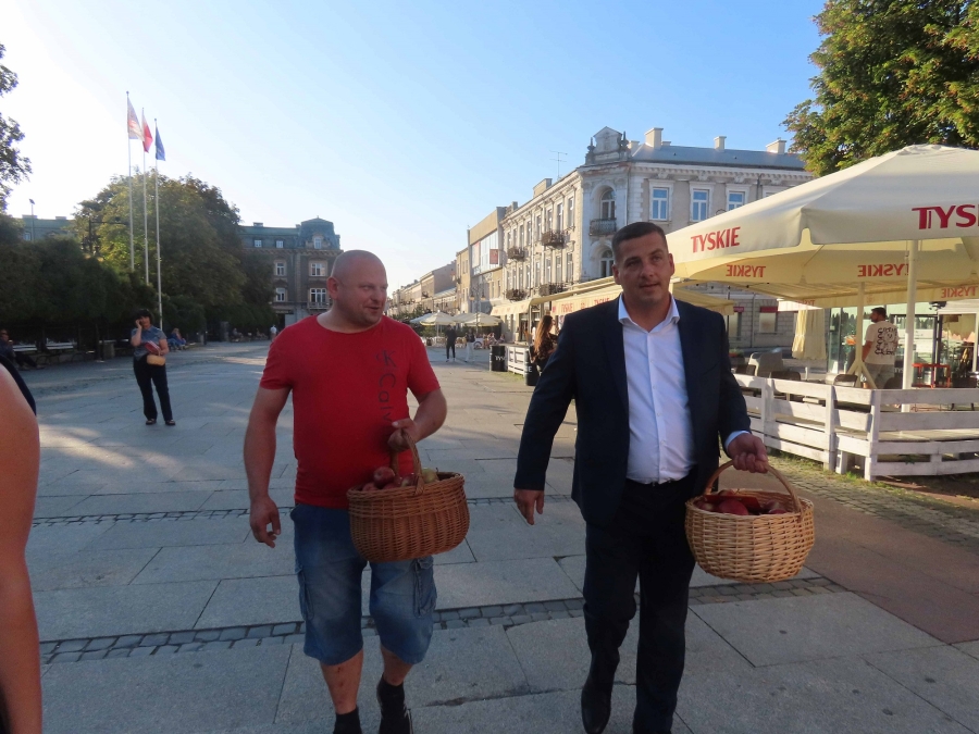 Z  tej  okazji dzisiaj  przeprowadziliśmy uliczną    akcję , mającą  na  celu  popularyzowanie  jabłek, jako najzdrowszego  owocu  świata, którego 45%  produkcji    w Polsce  pochodzi z  naszego  regionu .  Była to  dobra okazja  do  spotkań  z  mieszkańcami  i do  rozdawania  ulotek  przez  kandydatki  i  kandydatów do polskiego parlamentu.